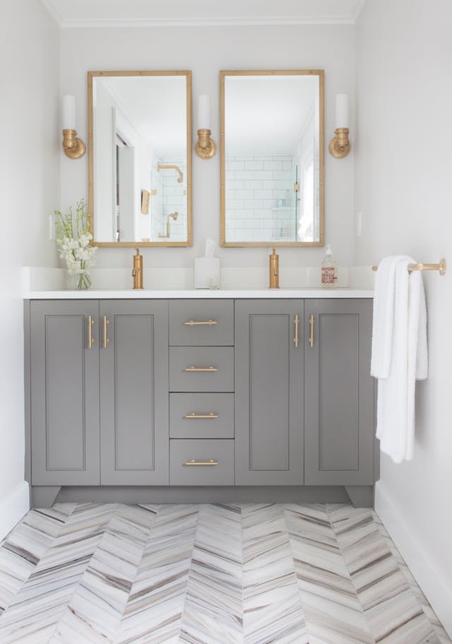 Maintain it easy with small however seen gold accents comparable to within the lights and self-importance knobs. Gold or brass fixtures will work if you’d like the room to have a shiny look each time you clear it. Gold lighting fixtures will particularly look good in opposition to vibrant backdrops.