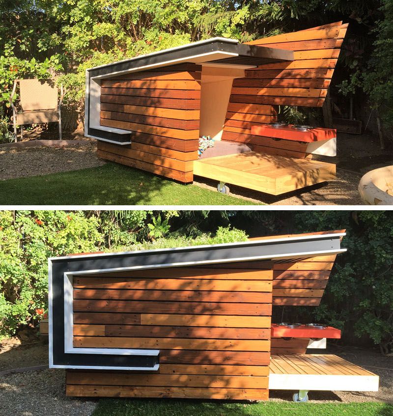 This is the Puphaus, a miniature model of a contemporary house for canines that reside in type. It was designed by Pyramd Design Co. and it’s constructed utilizing supplies similar to western pink cedar wooden and cement boards. The mixture is supposed to make the home look genuine and really feel at house in any typical outside setting. The flat roof makes a cool design assertion and the chrome steel bowls are a sensible addition.
