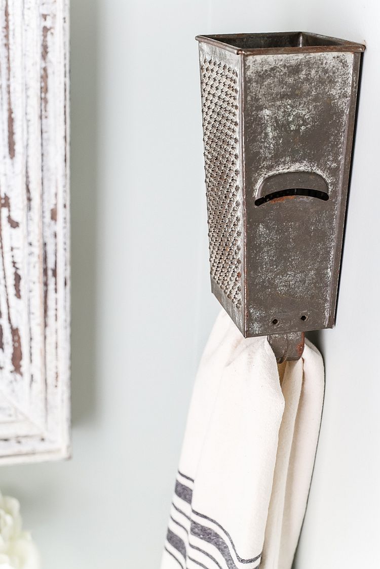 Upcycling is a big part of DIY world and with two projects like the DIY enamel mug organizer and the grater towel rack, you get just that! These simple ideas could easily spur you to turn something entirely unexpected into kitchen décor piece with farmhouse tinge to it.