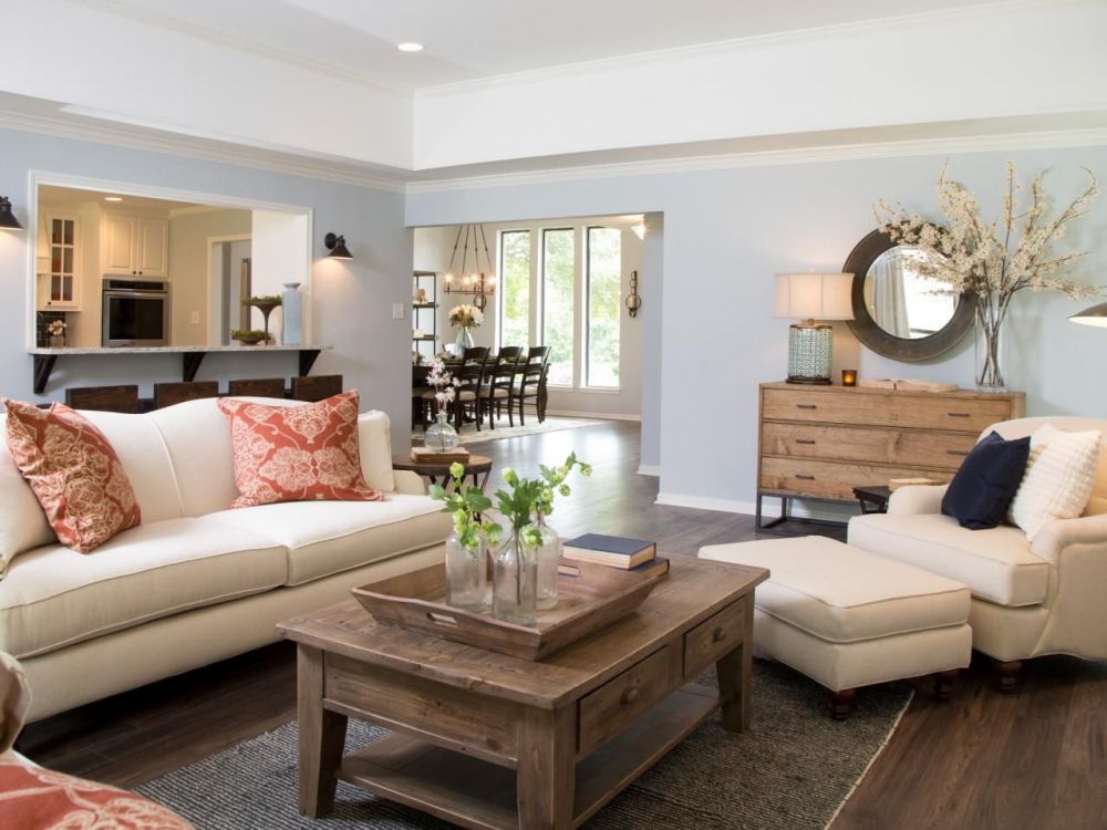 Farmhouse lovers well know that this style is made up of a lot of cream and brown with vintage touches mixed in. Vintage decor means you’ll end up with varying shades of blue but if you paint that farmhouse living room in a light powder blue shade, you’ll bring all the variations together.