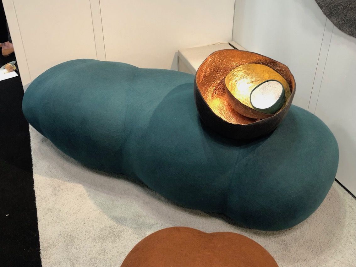 Like a snowstorm of Tibetan sheep fur, this design by Guillermo Santomá includes a bench that looks made for lounging — solo or a deux! While the entire setting is a work of art, the bench itself is super welcoming and just a good for a nap as a spot for guests. It’s definitely the focal point of the room.