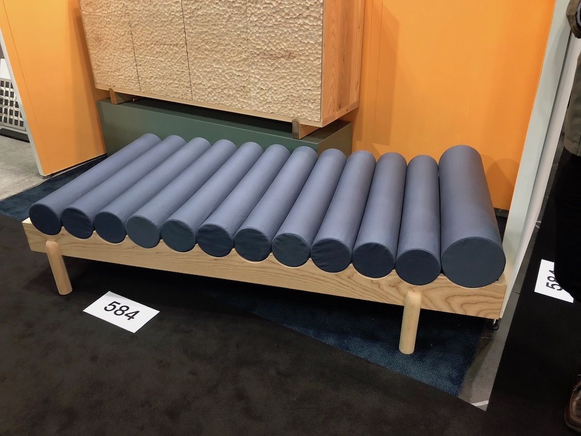 Of course, there’s no rule that a bench has to be rectangular or thin, as this bench demonstrates. A more organic, cloud-like shape is paired with legs composed of stacked ball shapes. This is another bench that deserves to be on show for both its shape as well as the leg details. It’s more suited to a large living space than life at the foot of a bed.