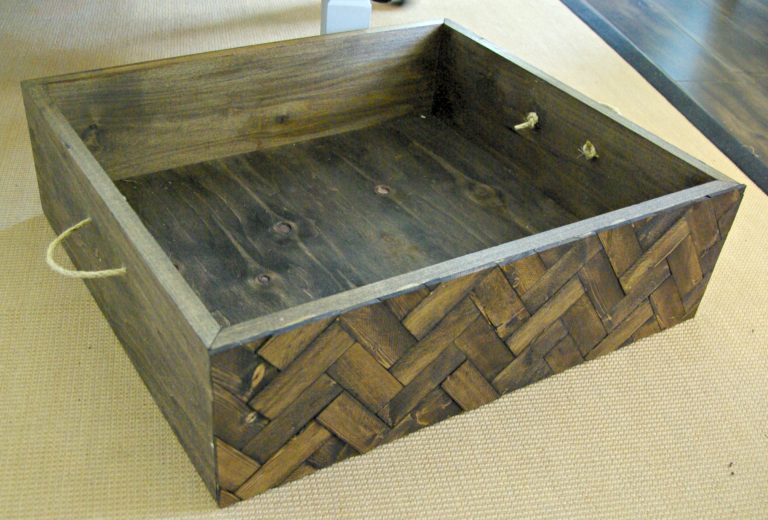 Boxes are great for storage. A herringbone box such as this one could be great for keeping toys, coloring books and other kids’ related things out of sight, under the bed. You can install casters so it rolls out easily. The most interesting part of the project is, of course, the herringbone pattern.