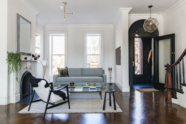 The Carroll Gardens Townhouse is located on a quiet, tree-lined street in Brooklyn.